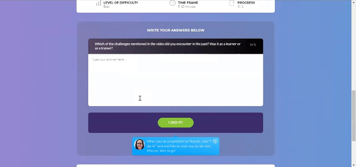Building new skills isn't just about memorizing information; it requires real-life practice and intelligent personal feedback. myQuest LMS was designed to achieve this. With our “Quest Builder,” you can easily create gamified training experiences structured around practical activities. Each activity is followed by personalized feedback from an expert, peers, or an AI assistant trained on your content. We use advanced technology to return to the skill-building basics, now at scale.