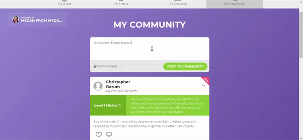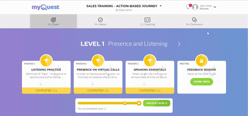 myQuest encourages real social learning through its learning community, buddy system, coaching features, and cohort-based learning. By creating a social learning environment, learners can inspire each other and are more likely to participate and engage in the training.