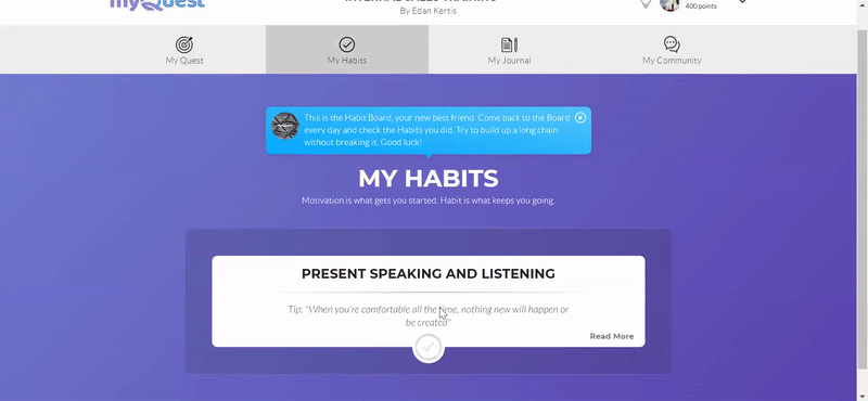 Building and sustaining new habits is crucial for achieving long-term success in learning and personal development. To support learners in establishing positive habits, myQuest provides a range of powerful habit-formation tools. These tools are designed to help individuals consistently engage in desired actions, reinforce learning, and drive behavior change.