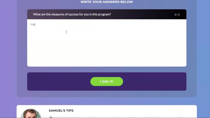 Utilize AI to provide personal feedback at scale. myQuest trains AI on your content, allowing you to use it as your assistant, suggesting feedback in your 1:1 coaching interactions, or as a fully automated process where learners receive feedback on every activity they complete during the program.
