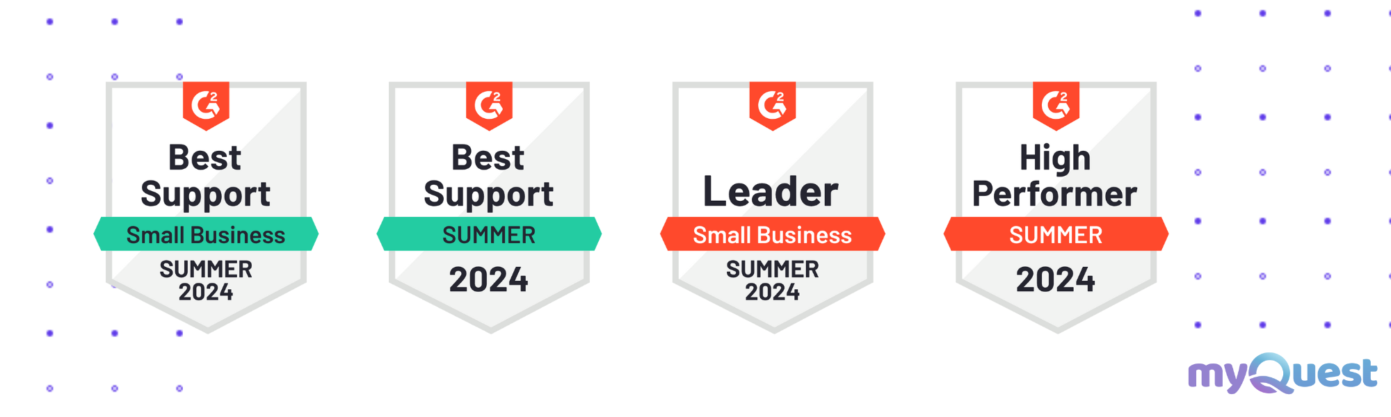 We are incredibly proud to share that myQuest has been awarded four new badges from G2, the leading platform for business software and services reviews. These badges are a testament to our commitment to providing exceptional learning and training management solutions and outstanding customer support.
